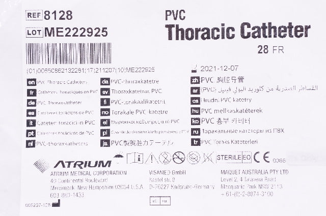 - Atrium 8128 PVC Thoracic Cath. 28FR