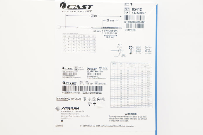 Atrium 85412 Cast Balloon Expandable PTFE Covered Stnt 6mm x 38mm x 120cm
