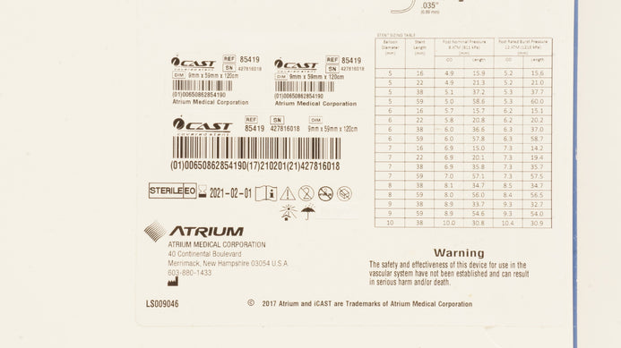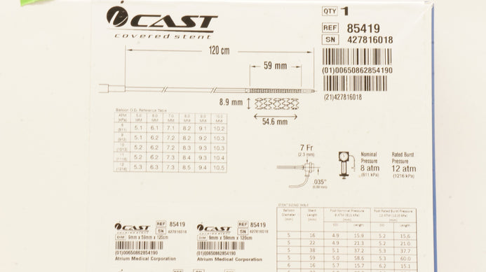 Atrium 85419 Cast Covered Stent 9mm x 59mm x 120cm