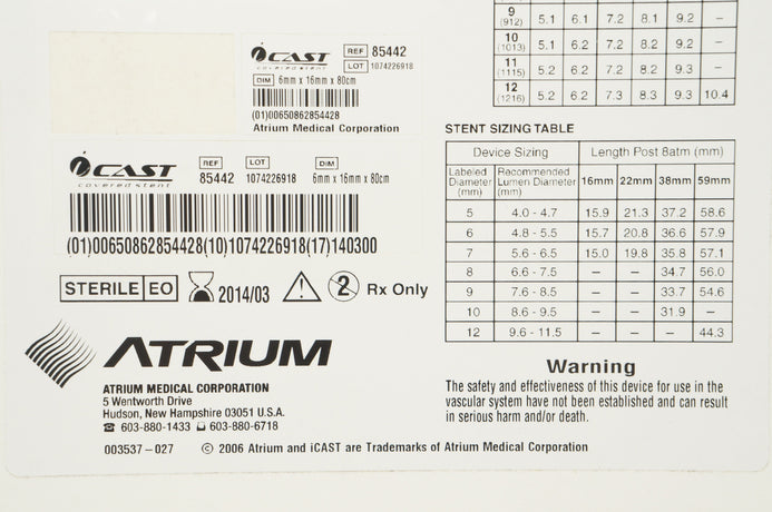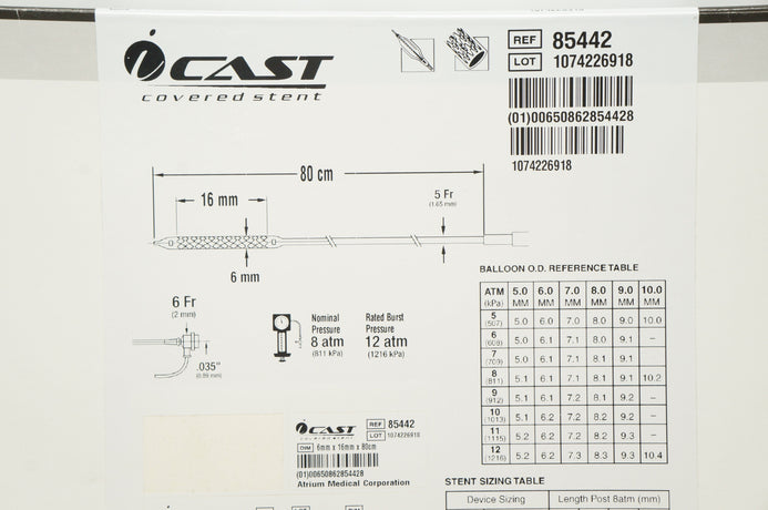 - Atrium 85442 Cast Covered Stent 6Fr 6mm x 16mm x 80cm (x)