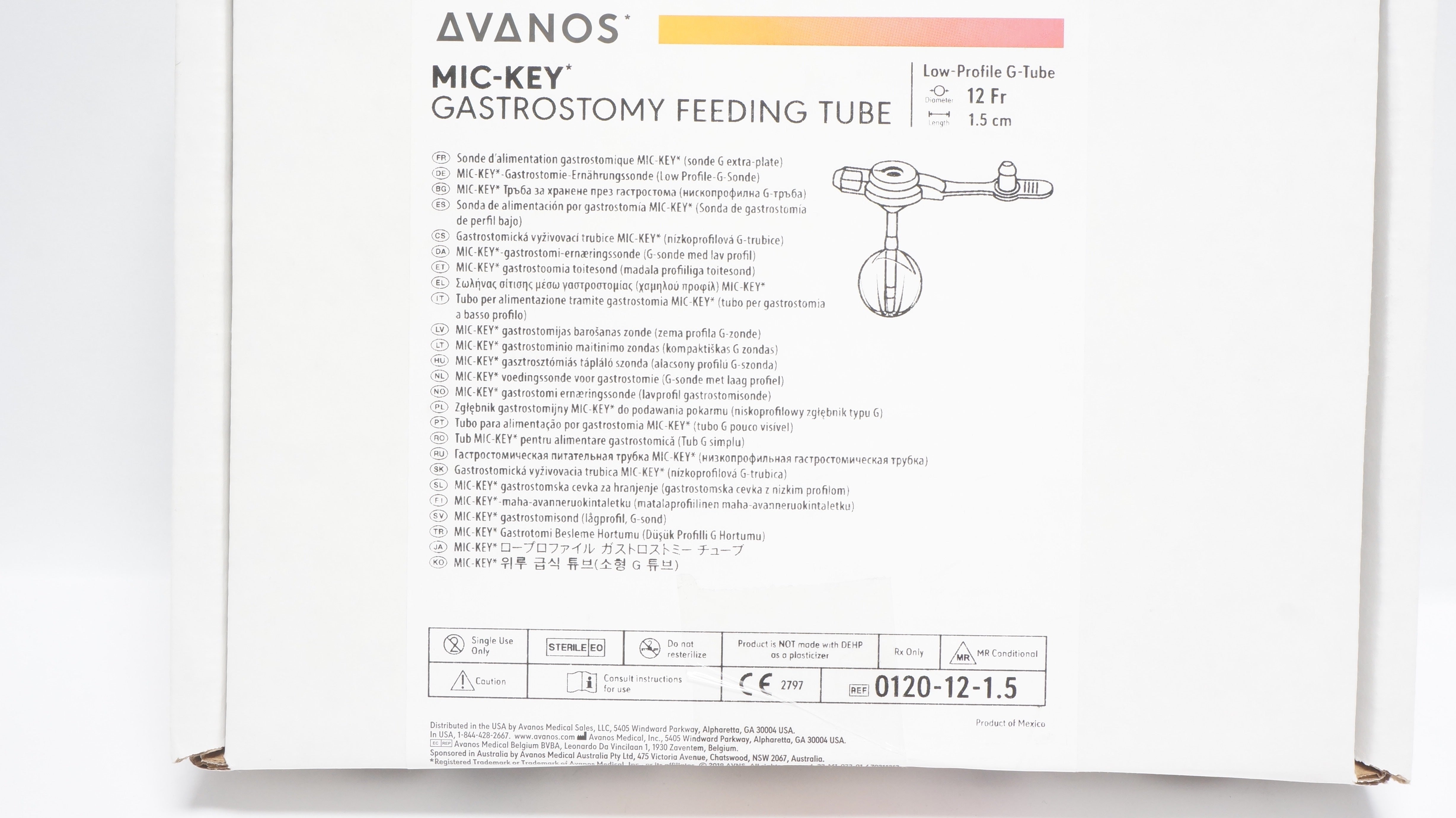 - Avanos 0120-12-1.5 MIC-KEY Gastrostomy Feeding Tube Low-Profile G-Tube 12Fr (x)