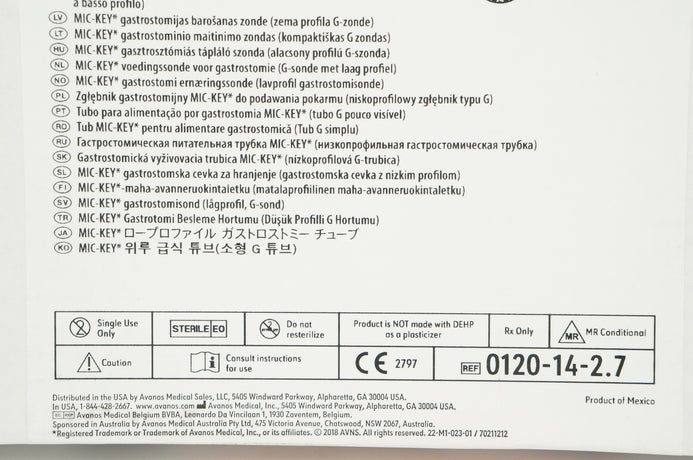 Avanos 0120-14-2.7 Mic-Key Gastrostomy feeding Tube 14Fr 2.7cm