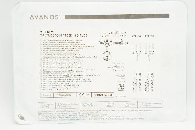 Avanos 0120-16-0.8 MIC-KEY Gastrostomy Feeding Tube Low-Profile G-Tube 16Fx0.8cm