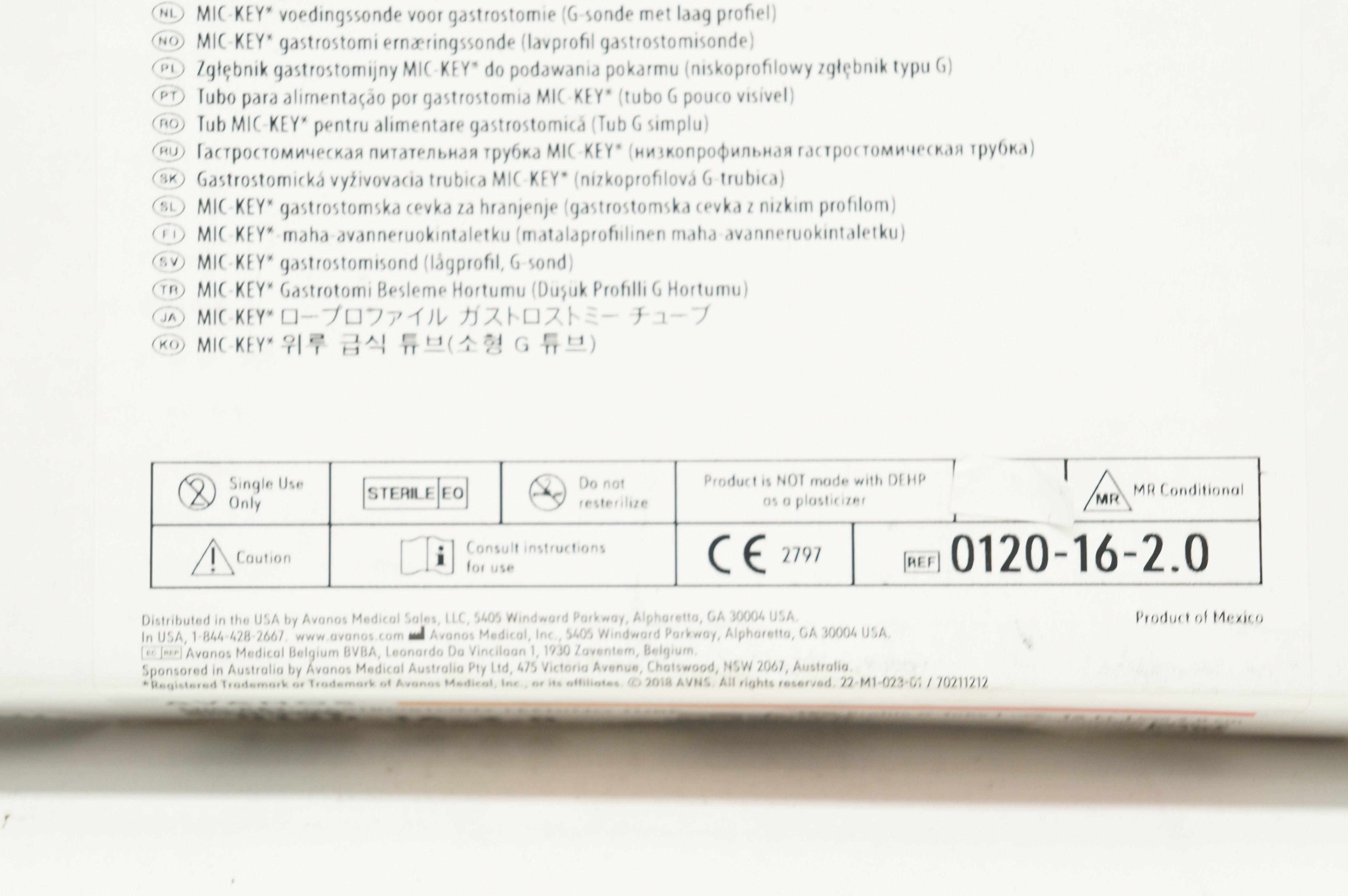 Avanos 0120-16-2.0 MIC-Key Gastrostomy Feeding G-Tube 16 Fr x 2.0 cm (x)