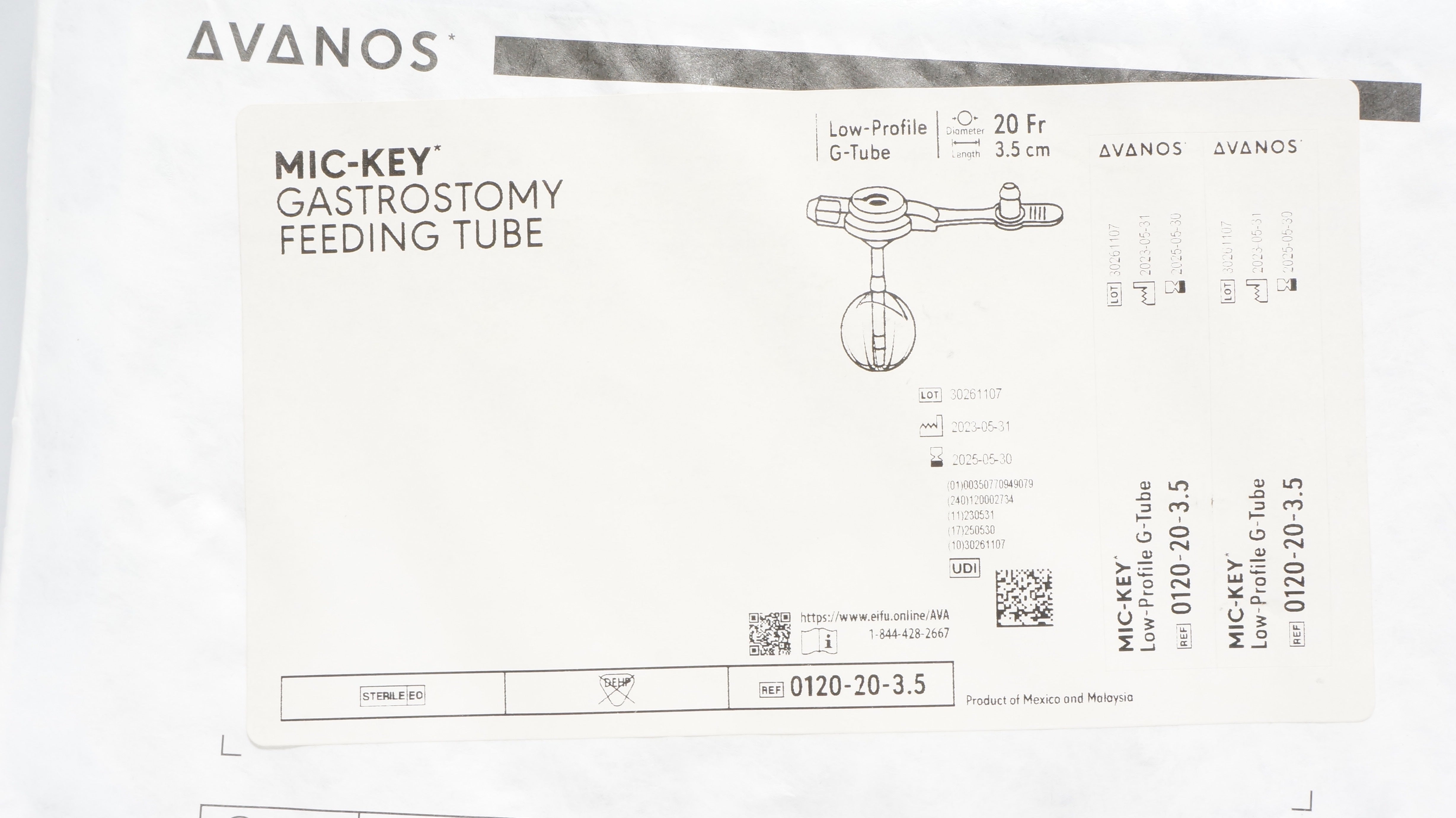 - Avanos 0120-20-3.5 MIC-KEY Gastrostomy Feeding Tube 20Fr x 3.5cm (x)