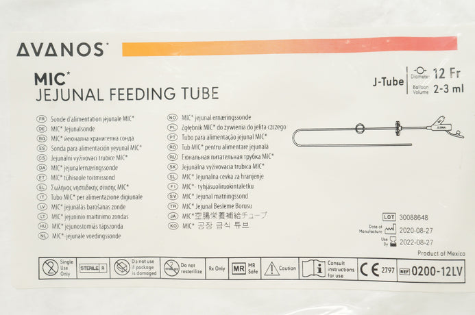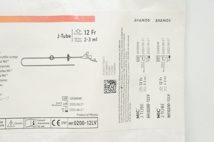 Avanos 0200-12LV MIC Jejunal Feeding Tube J-Tube 12 Fr 2-3ml