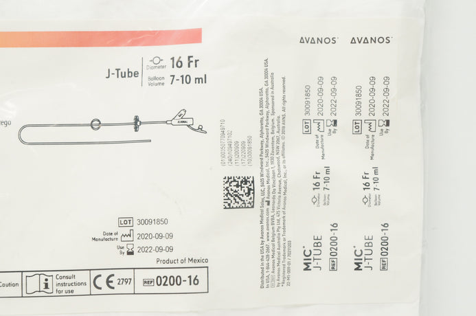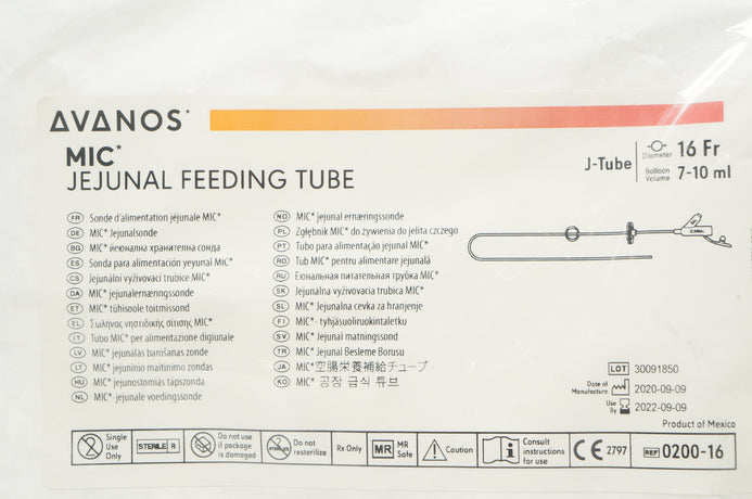 Avanos 0200-16 MIC Jejunal Feeding Tube J-Tube 16Fr x 7-10 ml