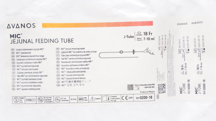 Avanos 0200-18 MIC Jejunal Feeding Tube J-Tube 18Fr x 7-10 ml (x)