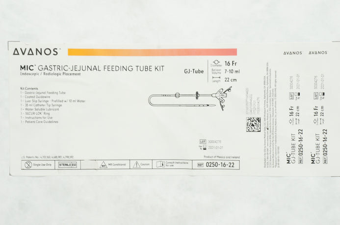 Avanos 0250-16-22 MIC Gastric-Jejunal Feeding Tube Kit GJ-Tube 16Fr x 7-10ml x 22cm
