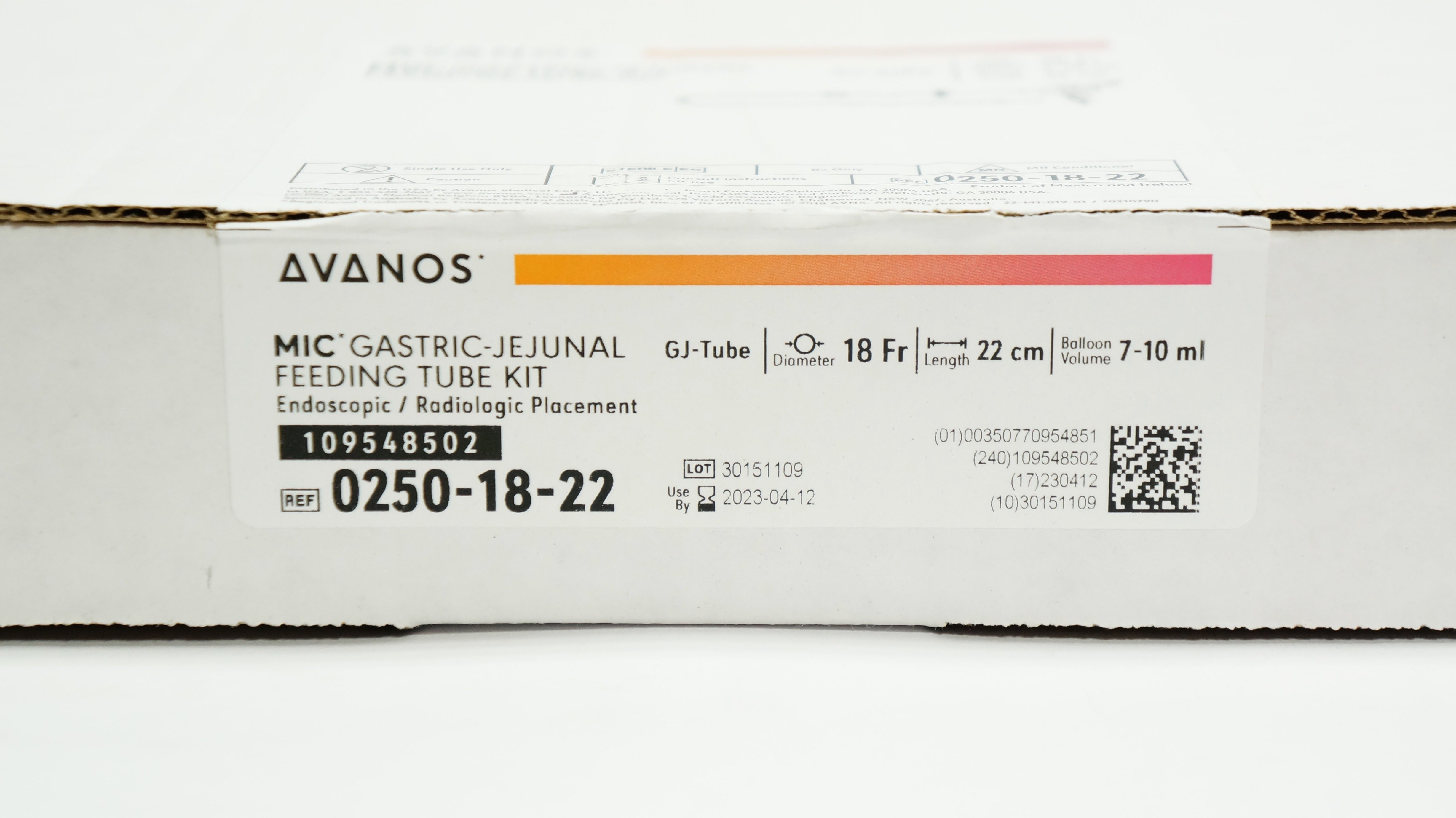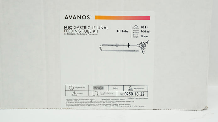 - Avanos 0250-18-22 MIC Gastric-Jejunal Feeding Tube Kit 18Fr x 22cm 7-10ml (x)