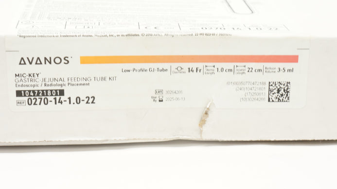 - Avanos 0270-14-1.0-22 Mic-Key Gastric-Jejunal Feeding Tube Kit 14Fr x 22cm x 1cm