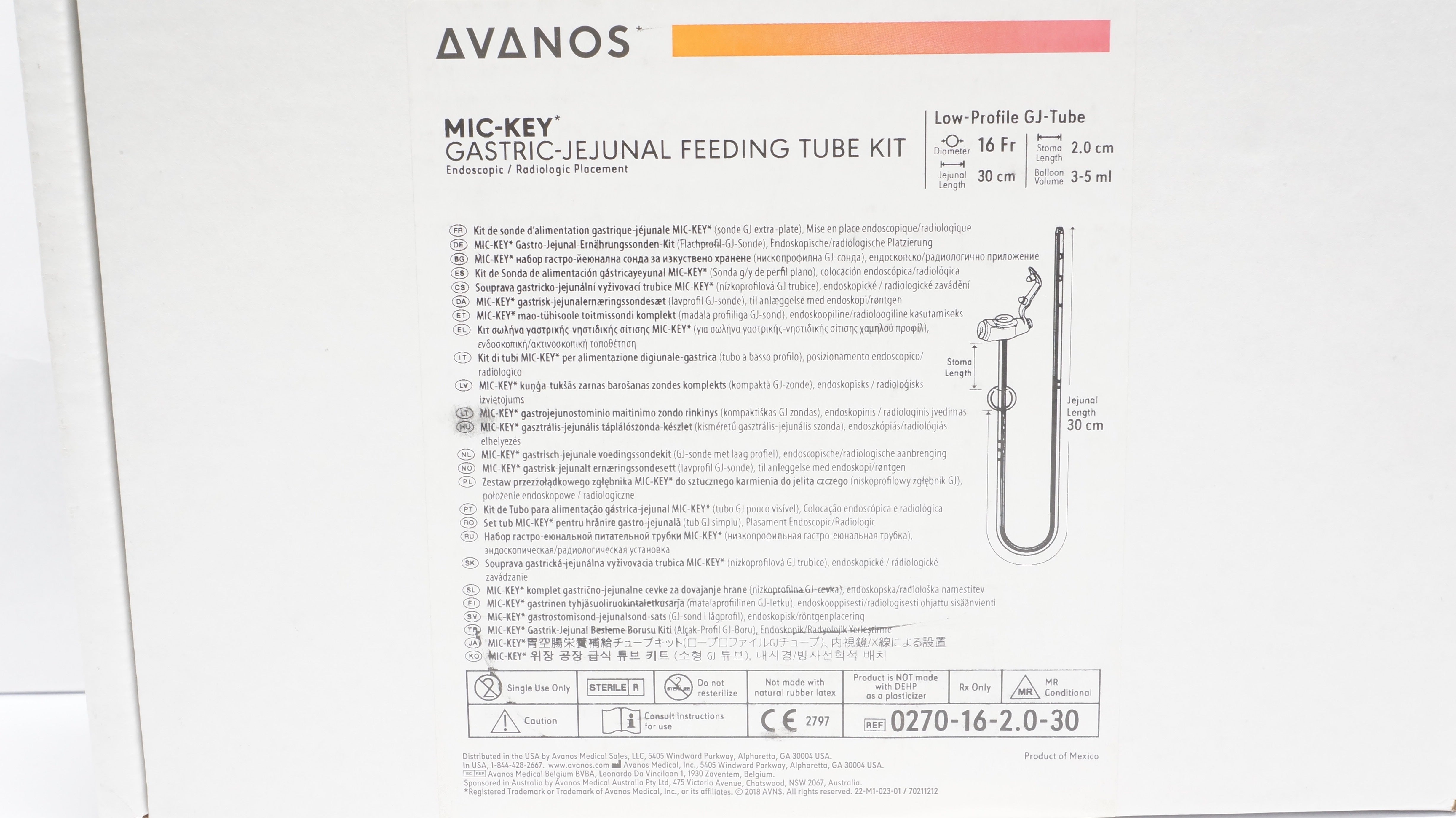 Avanos 0270-16-2.0-30 Mic-Key Gastric-Jejunal Feeding Tube Kit 16Fr x 30cm (x)