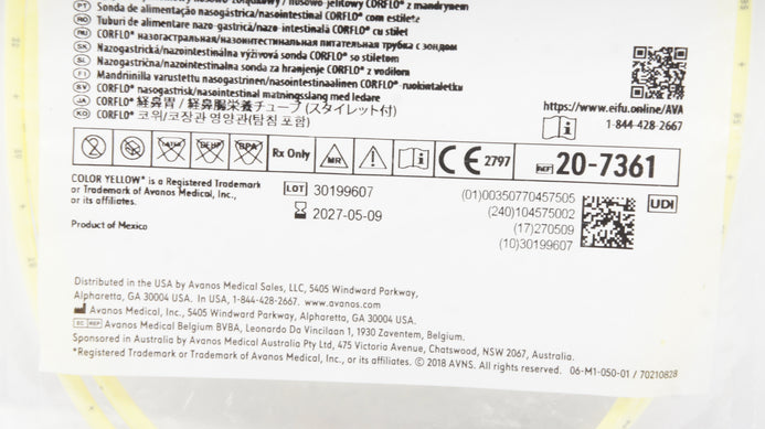- Avanos 20-7361 Corflo Nasogastric/Nasointestinal Feeding Tube 10Fr