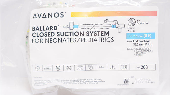 - Avanos 208 Ballard Closed Suction System For Neonates/Pediatrics 8F x 14inch