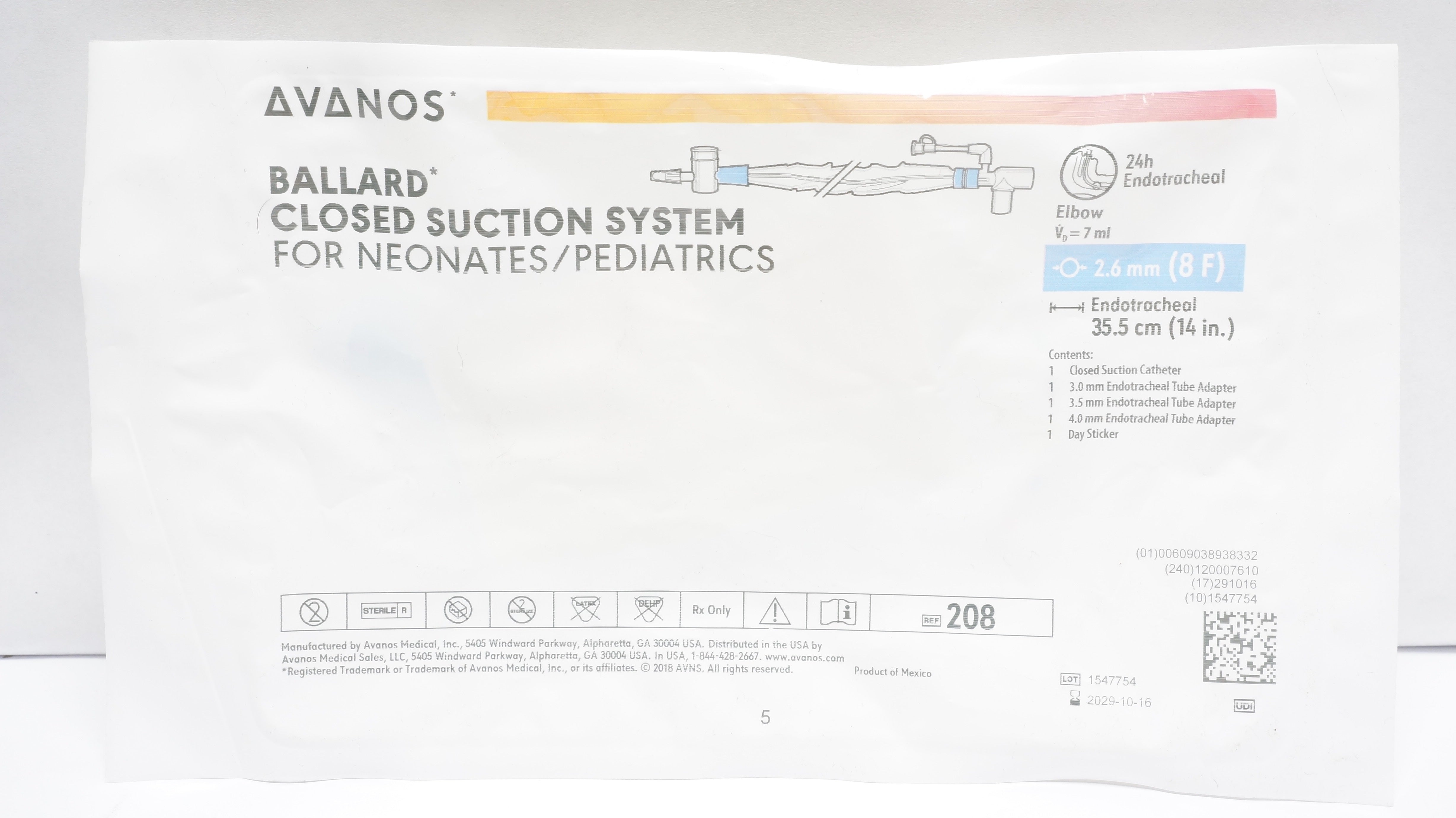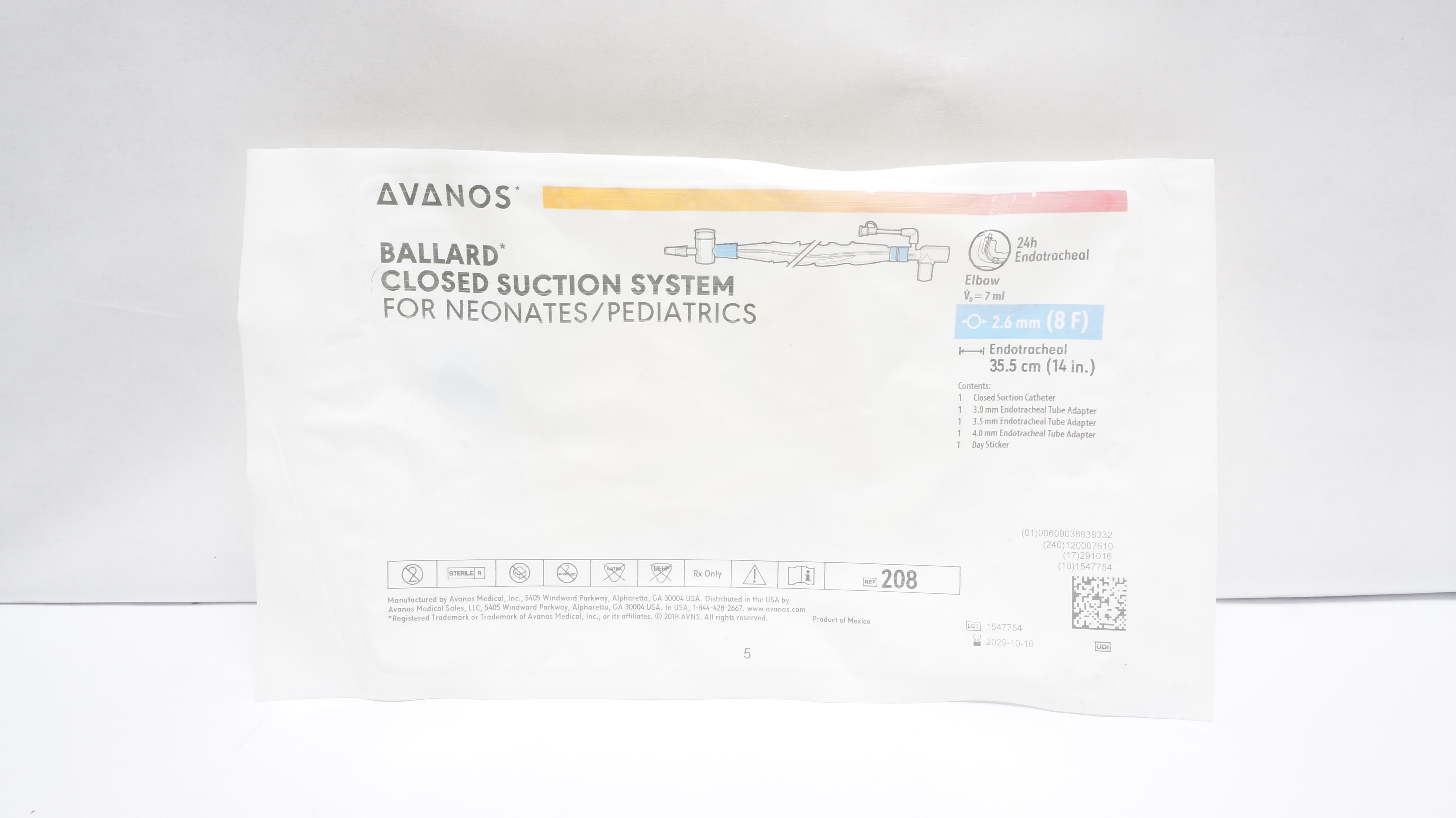 - Avanos 208 Ballard Closed Suction System For Neonates/Pediatrics 8F x 14inch