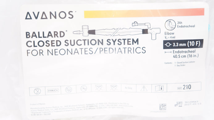 - Avanos 210 Ballard Closed Suction System for Neonates/Pediatrics 10F x 16inch