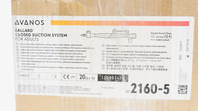 - Avanos 2160-5 Ballard Closed Suction System for Adult 12F - Box of 20