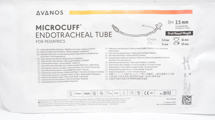 - Avanos 35112 Microcuff Pediatric Endotracheal Tube 3.5mm ID x 5.0mm OD x 12mm