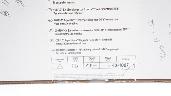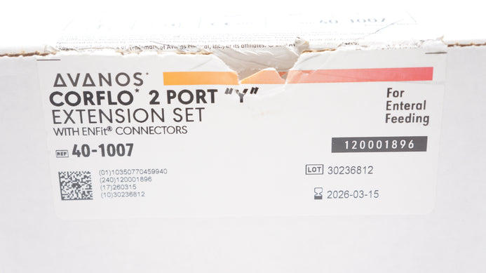 - Avanos 40-1007 Corflo 2 Port "Y" Extension Set w/ENFit Connectors - Box of 18