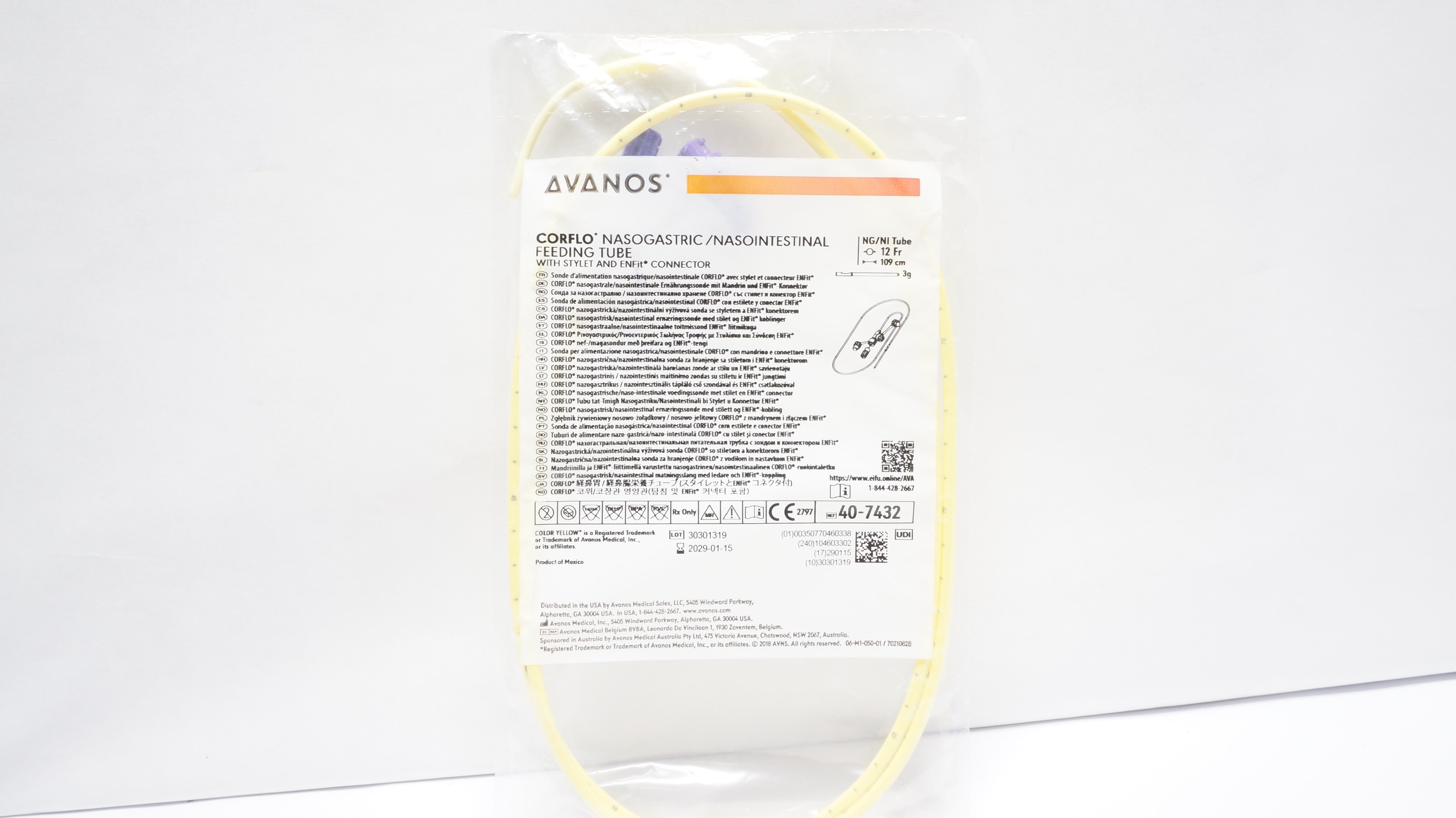 - Avanos 40-7432 Corflo Nasogastric/Nasointestinal Feeding Tube 12Fr x 109cm