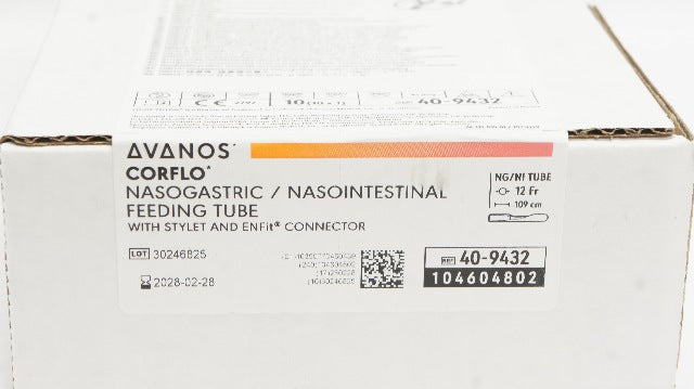 Avanos 40-9432 Corflo Nasogastric/Nasointestinal Feeding Tube 12Fr x 109cm