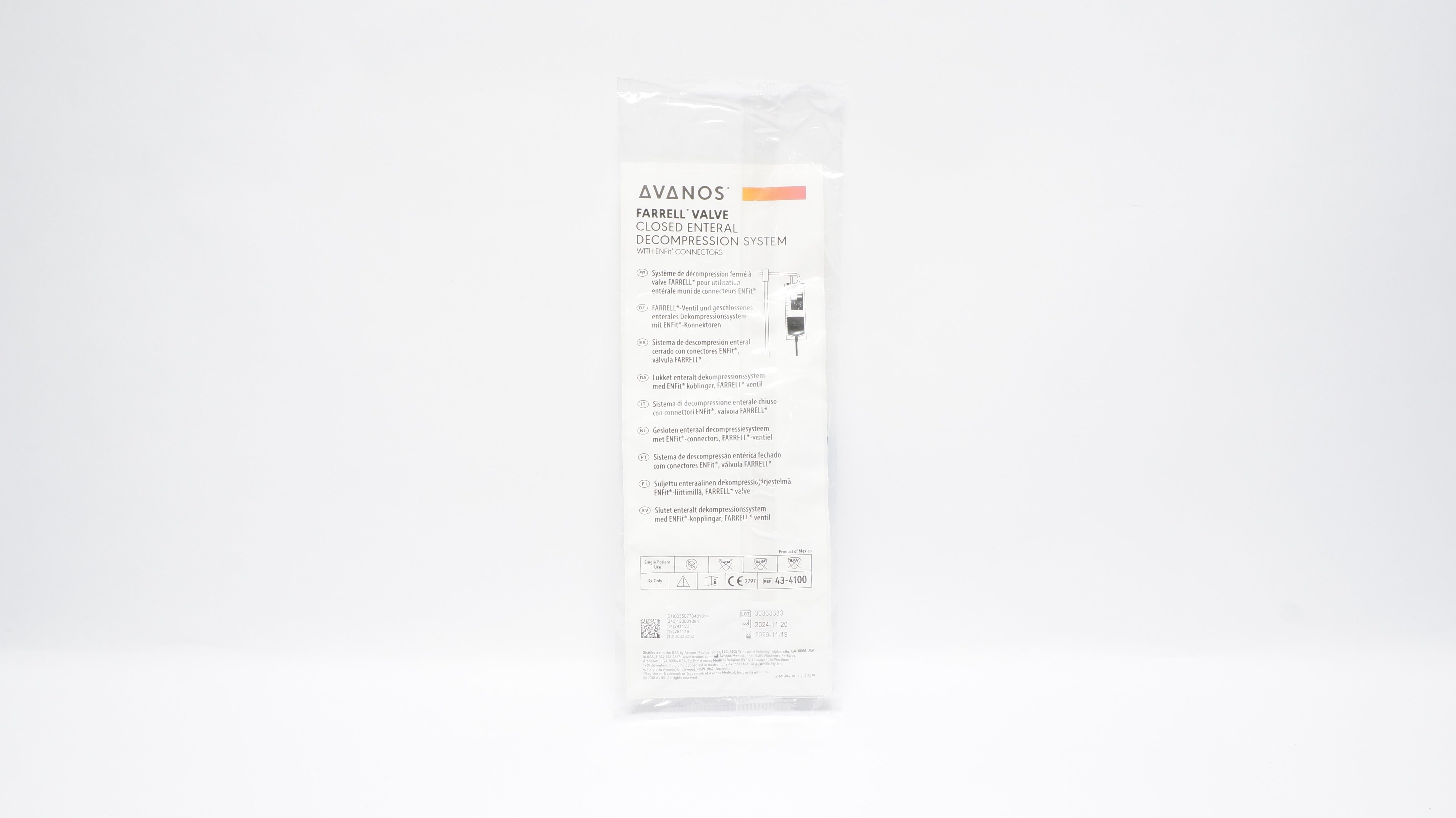 Avanos 43-4100 Farrel Valve Closed Enteral Decompression System