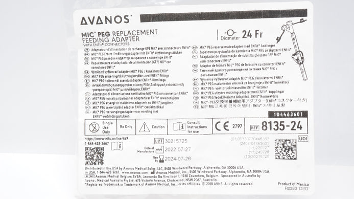 - Avanos 8135-24 Mic Peg Replacement Feeding Adapter 24Fr (x)