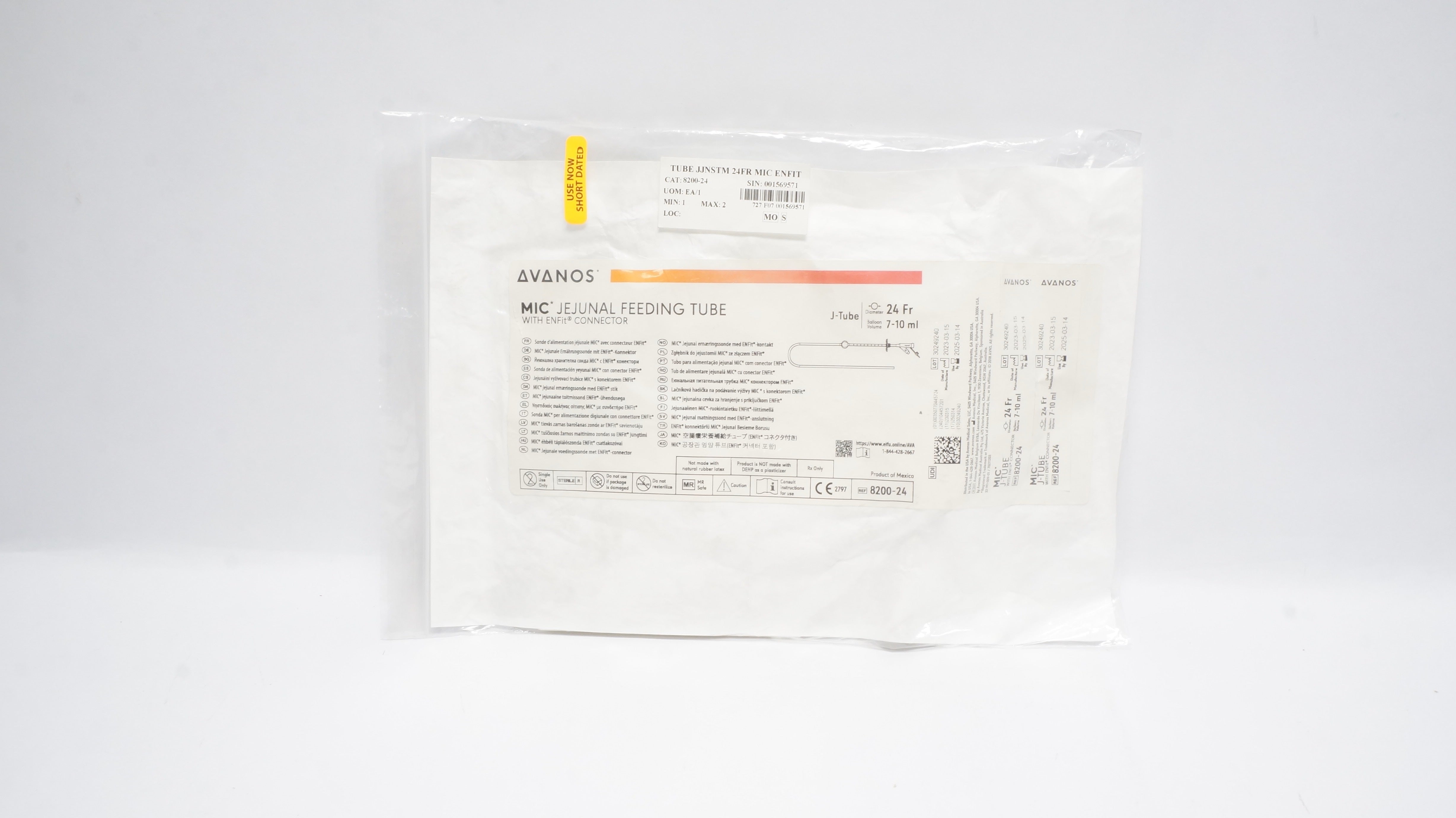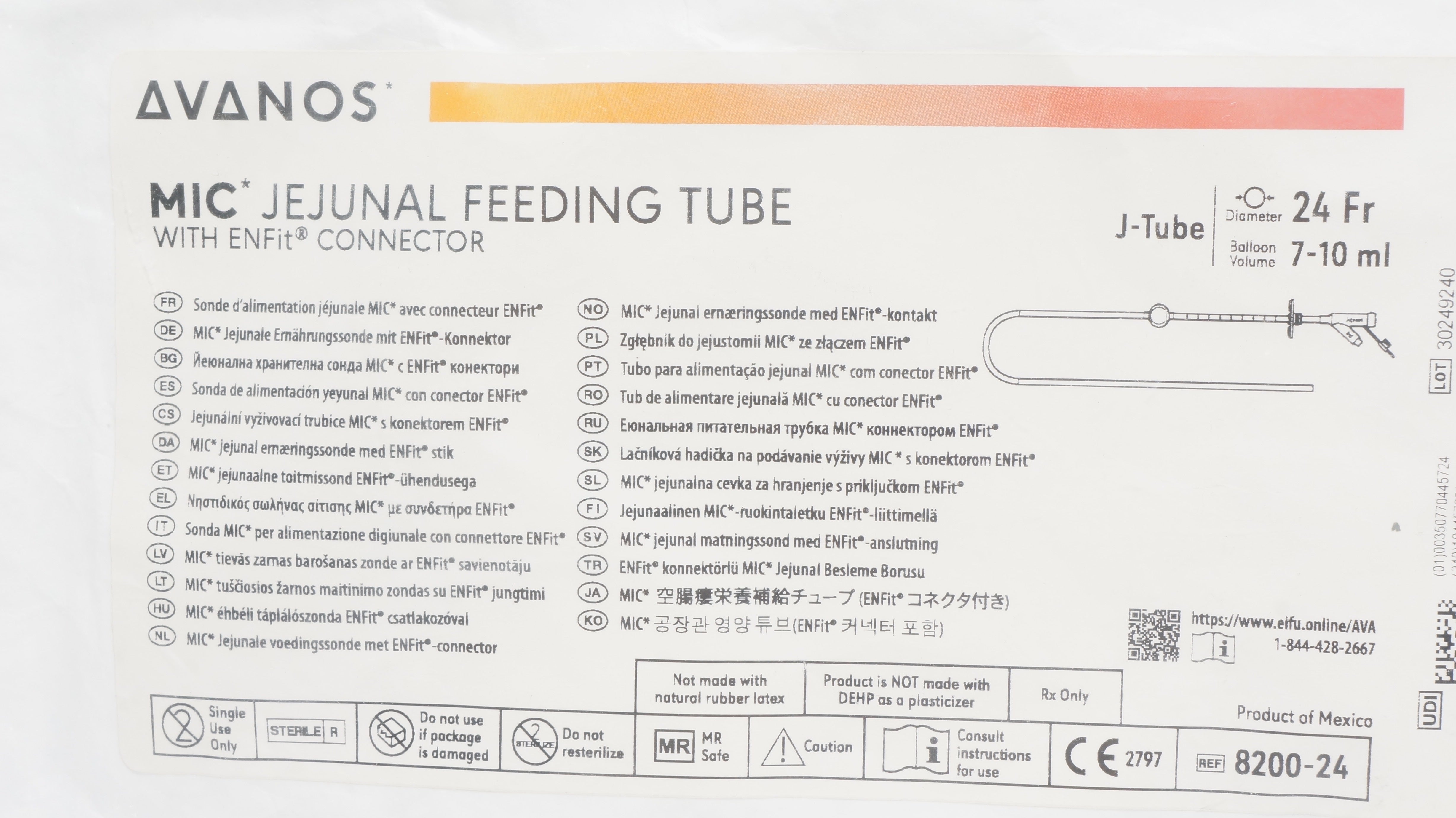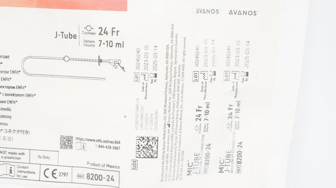 Avanos 8200-24 MIC JEJUNAL FEEDING TUBE w/ENFit Connector 24Fr, 7-10ml (x)