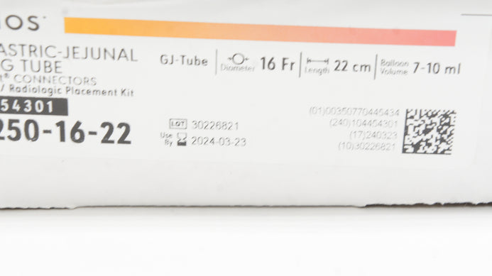 Avanos 8250-16-22 MIC Gastric-Jejunal GJ Feeding Tube with ENFit Connectors Endoscopic/Radiologic Placement Kit 16Fr x 22cm 7-10ml