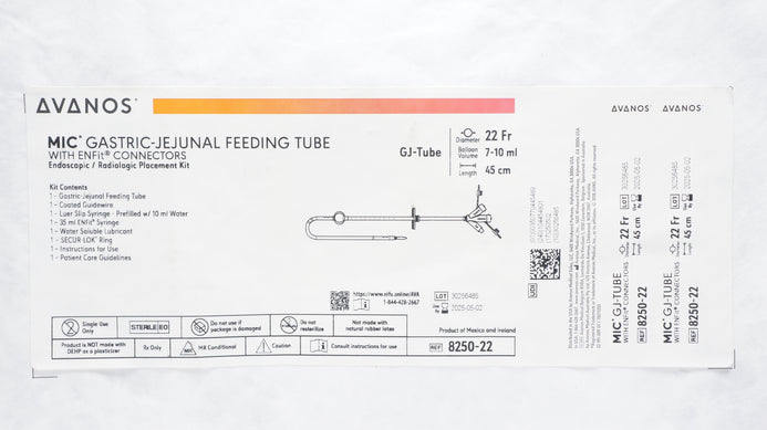 - Avanos 8250-22 MIC Gastric-Jejunal Feeding Tube 22Fr x 45cm x 7-10mL