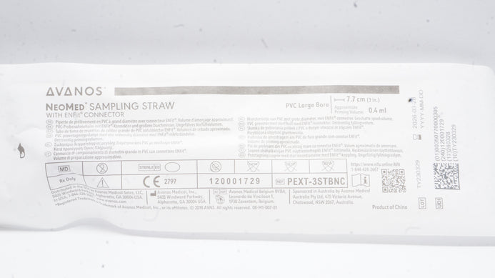 - Avanos PEXT-3STBNC NeoMed Sampling Straw w/ENFit Connector 3inch x 0.4mL(Appx.)