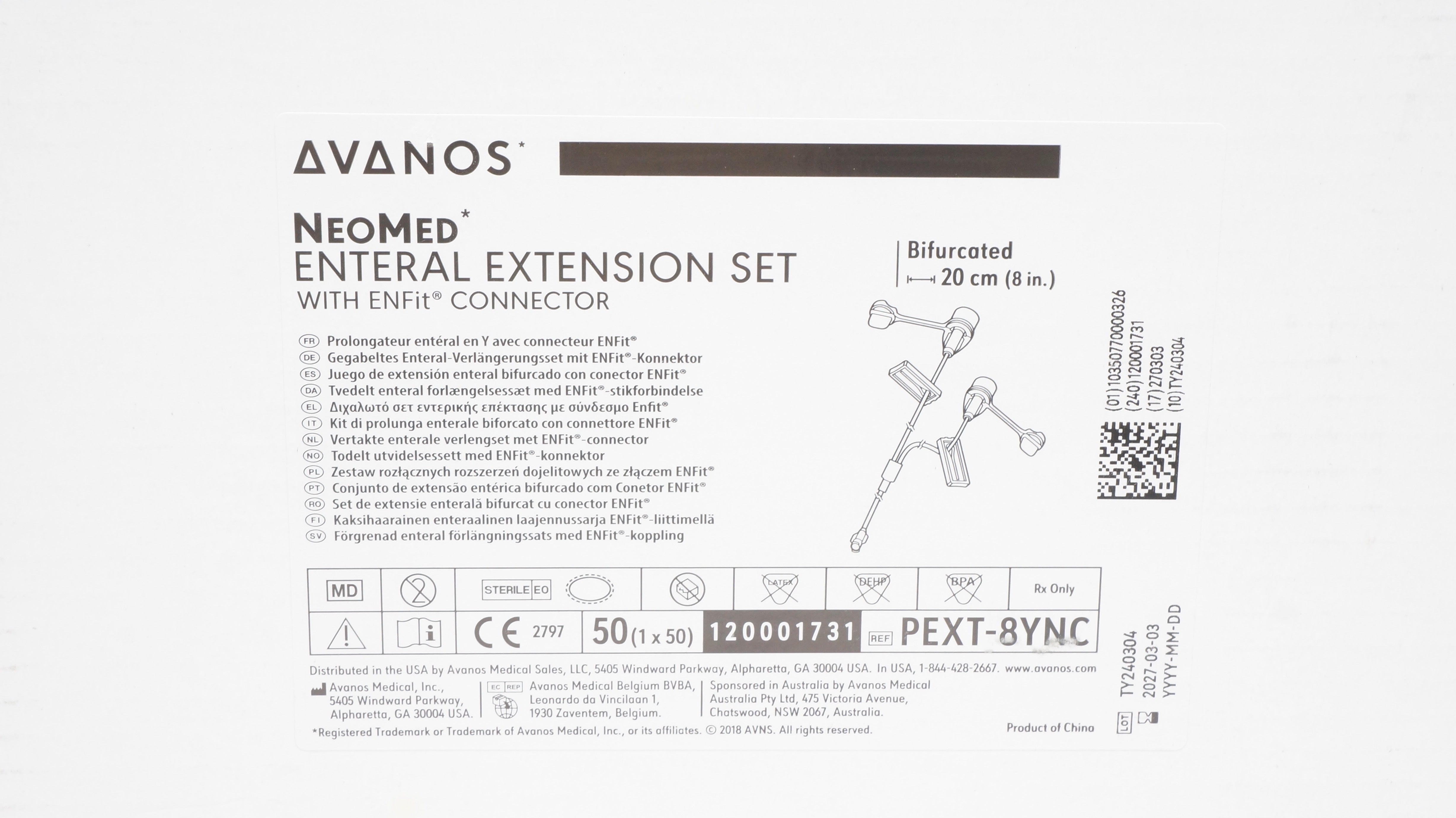 - Avanos PEXT-8YNC NeoMed Enteral Extension Set, Bifurcated 8In. - Box of 50