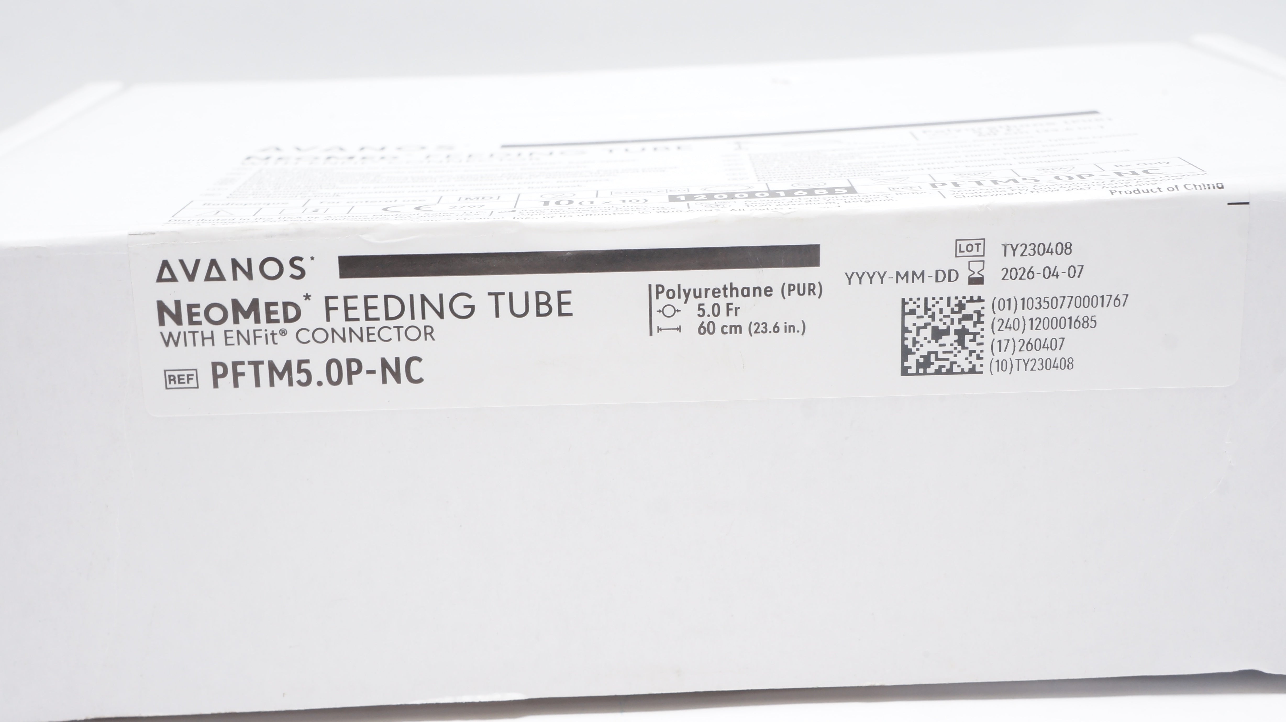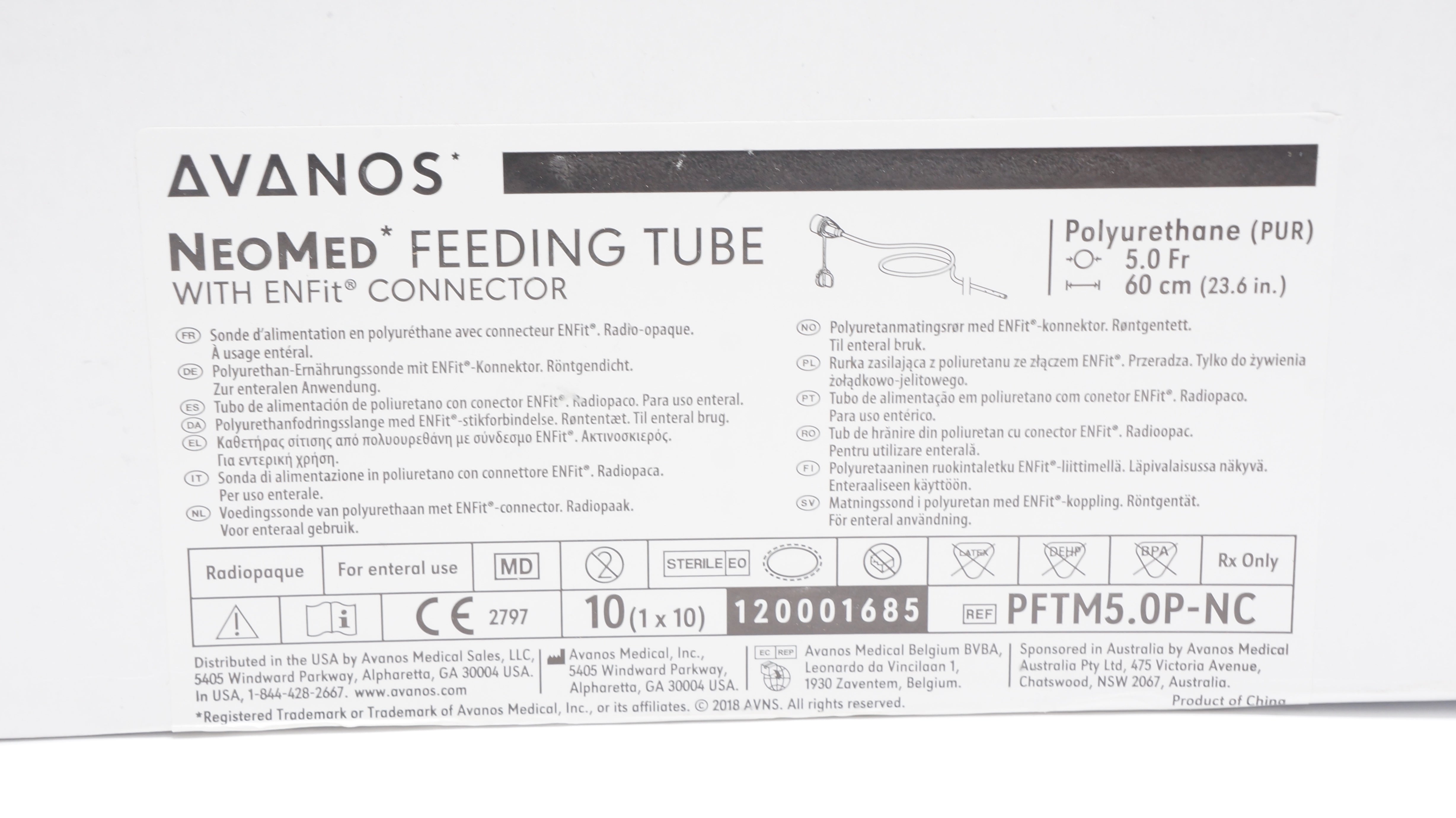 Avanos PFTM5.0P-NC NeoMed Feeding Tube w/ENFit Connector 5.0Fr x 23.6inch