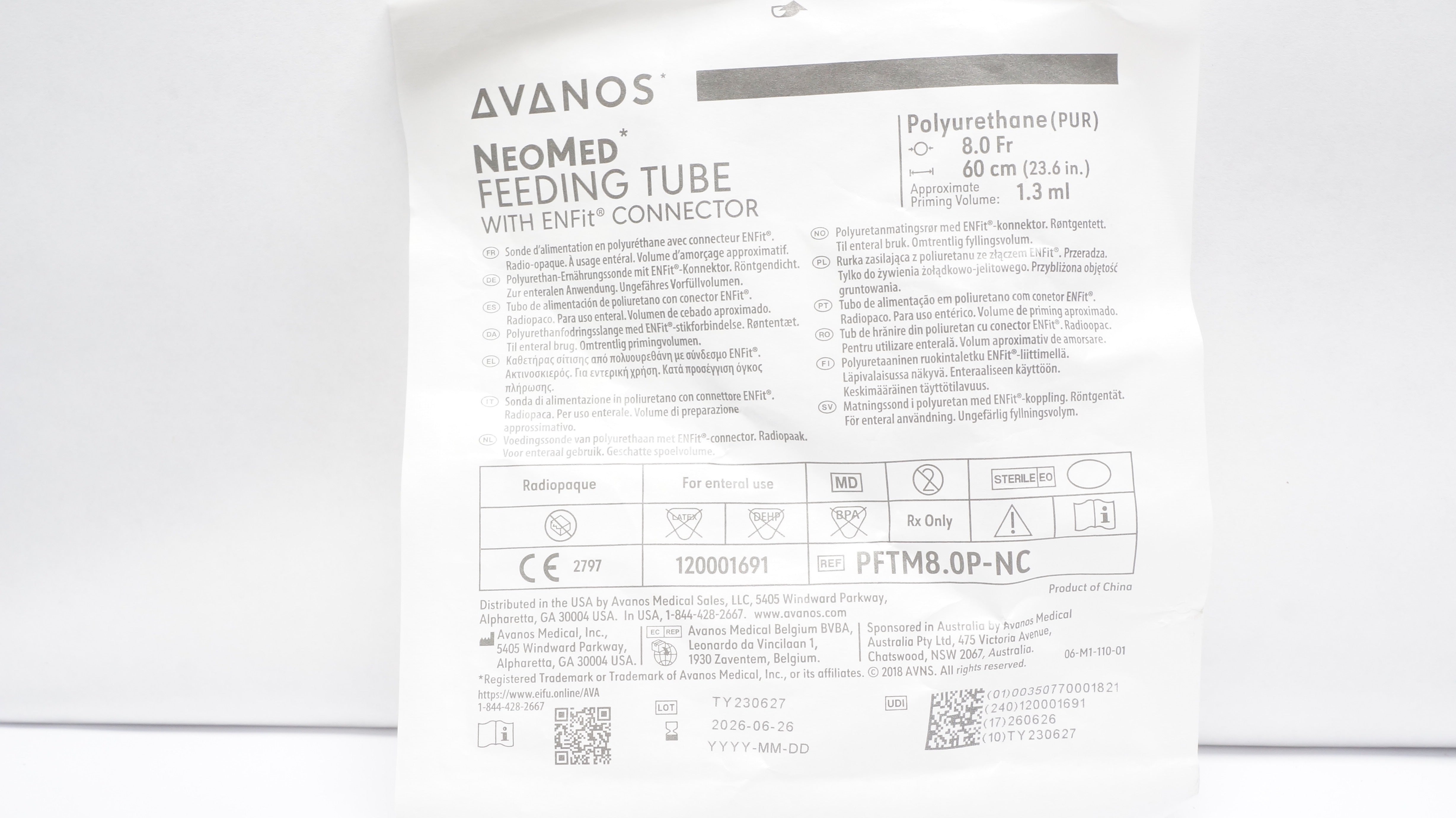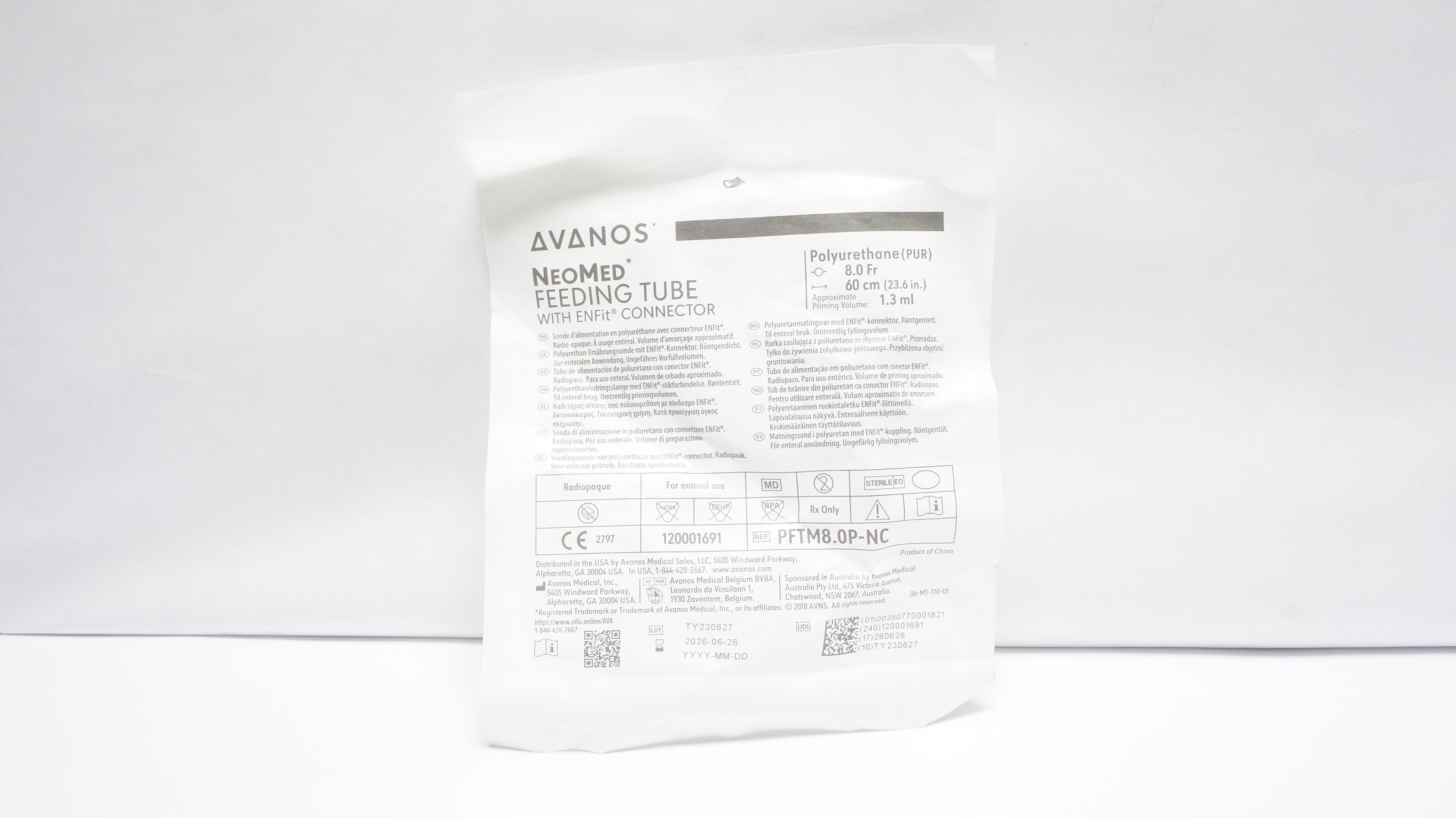 Avanos PFTM8.0P-NC NeoMed Polyurethane Feeding Tube w/EnFit Connector