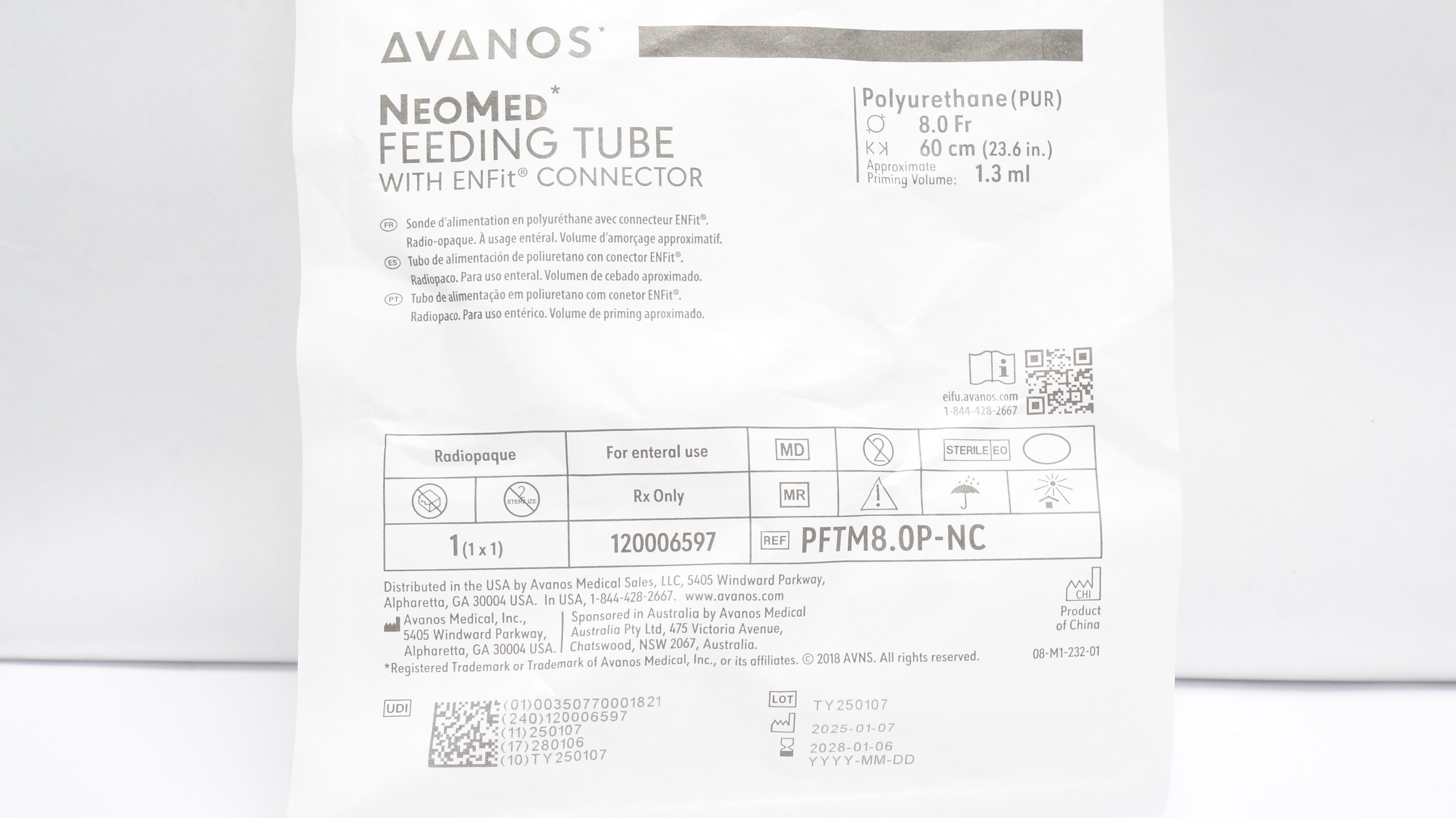 - Avanos PFTM8.0P-NC NeoMed Polyurethane Feeding Tube w/EnFit Connector