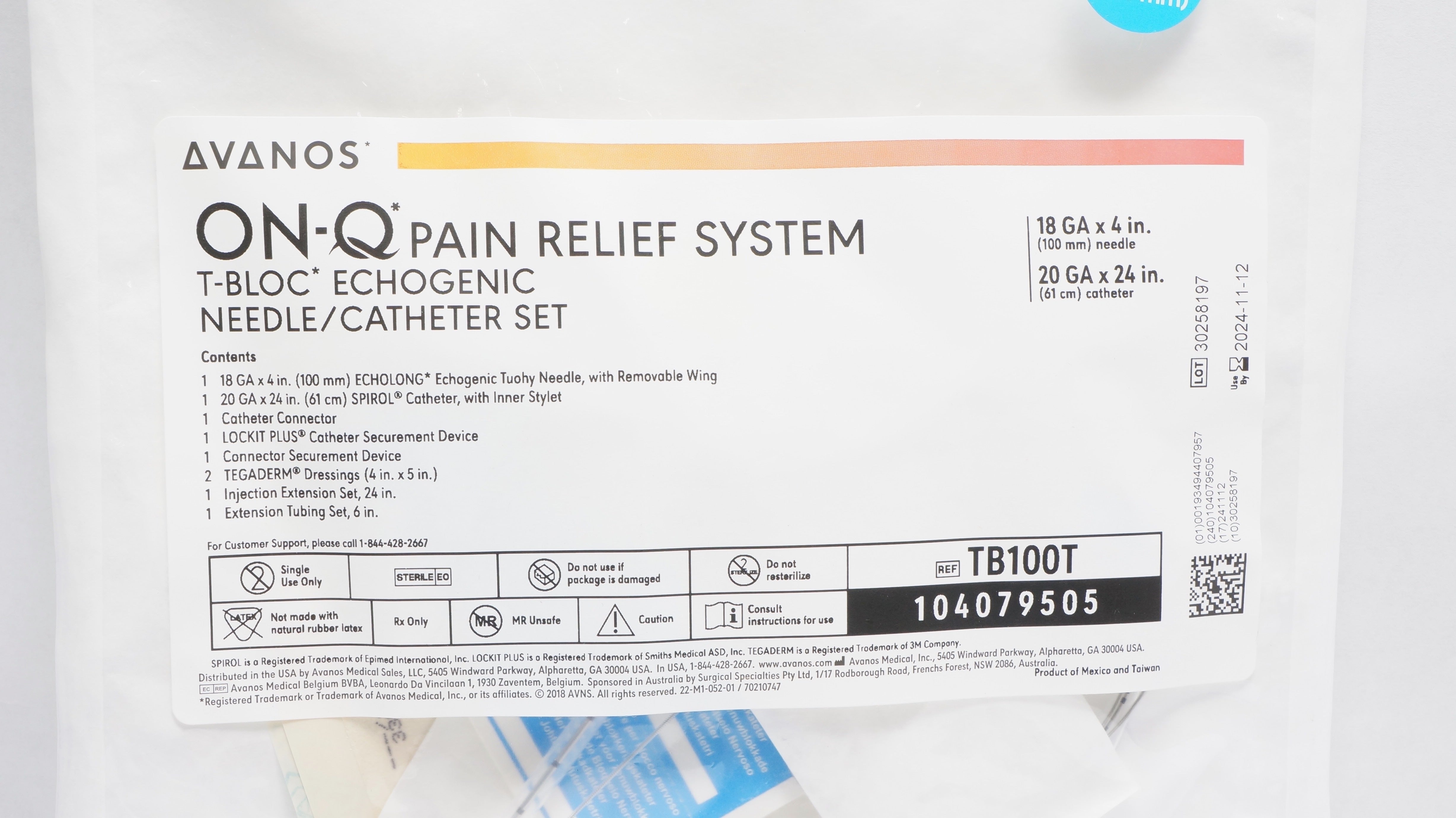 Avanos TB100T On-Q Pain Relief Syst T-Bloc Echogenic Ndle/Cath Set 18Gax4inch(x)