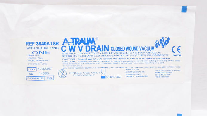 - Axiom Traum 3640ATSR CWV Closed Wound Drain, Round w/Stre Ring 7Fr x 75cm (x)
