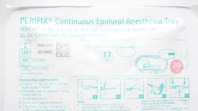 - B.Braun 332082 PERIFIX Continuous Epidural Anesthesia Tray 17Ga x 3-1/2inch