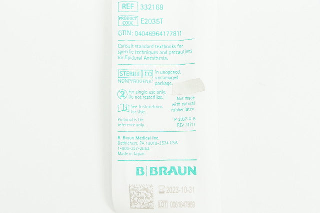 - B.Braun 332168 Epidural Ndle Perifix Tuohy Style 20Ga x 3-1/2In