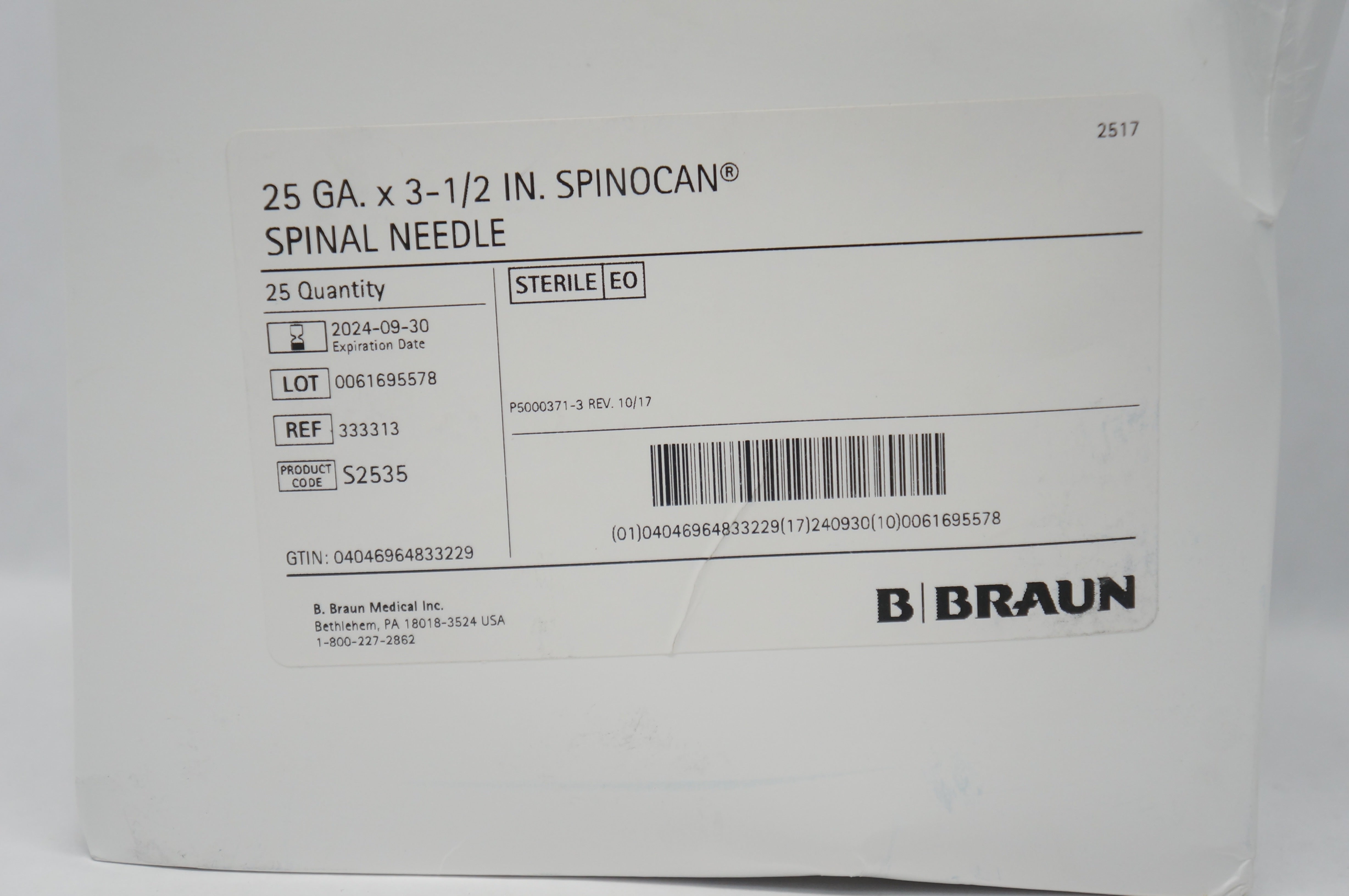 B.Braun 333313 Spinocan Spinal Ndle 25 GA. x 3-1/2 inch - Box of 25