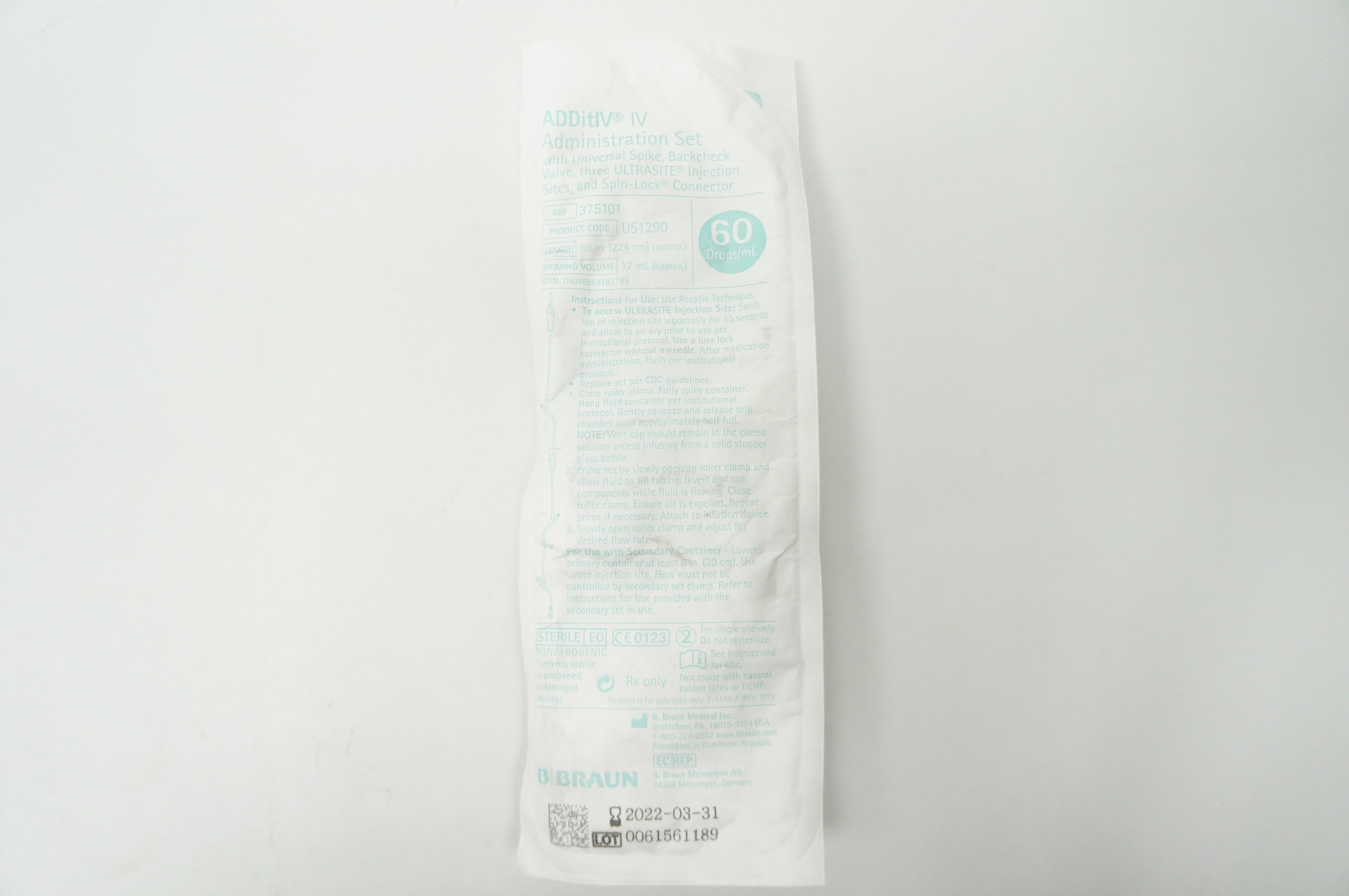 - B.Braun 375101 Administration Set 60 Drops/ml Priming Volume 17ml Length 88inch
