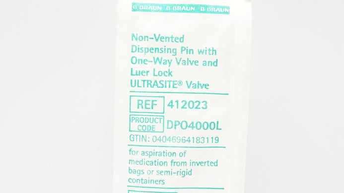 - B. Braun 412023 Non-Vented Dispensing Pin with One-Way Valve & Luer Lock