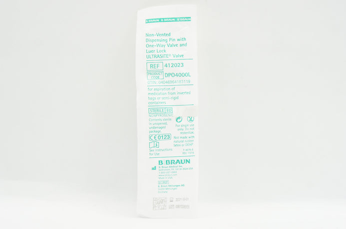 B. Braun 412023 Non-Vented Dispensing Pin with One-Way Valve & Luer Lock (x)