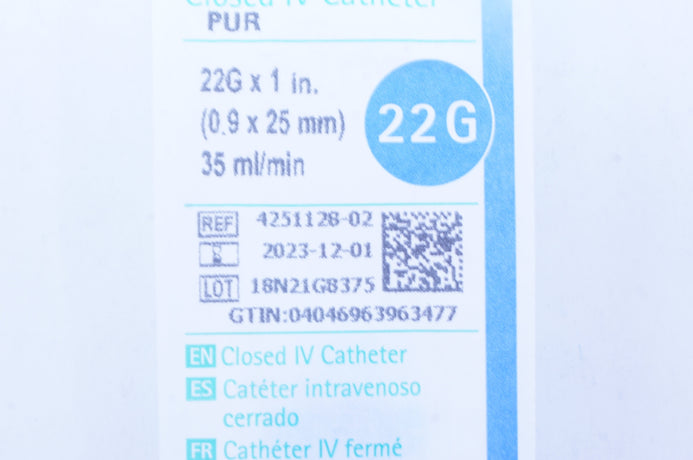 - B.Braun 4251128-02 Introcan Safety 3, Closed IV Cath. 22G x 1inch x 35ml/min (x)