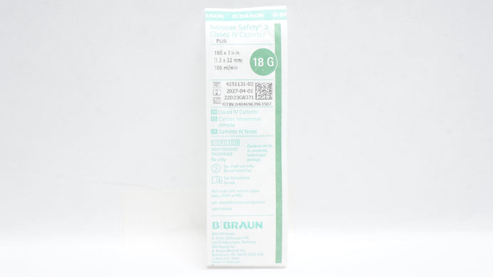 - B.Braun 4251131-02 Introcan Safety 3 Closed IV Cath. 18G x 1-1/4inch 105ml/min