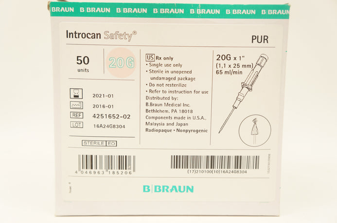 - B.Braun 4251652-02 Introcan Safety 20G x 1inch - Box of 50 (x)