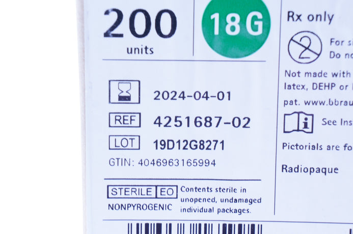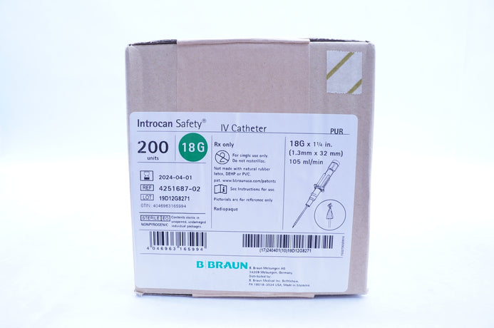 - B.Braun 4251687-02 Introcan Safety IV Cath. 18G x 1-1/4inch - Box of 200