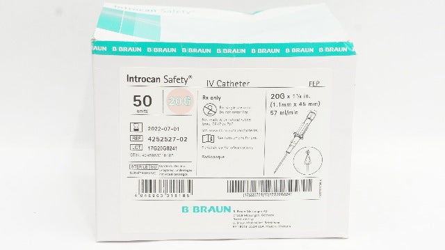- B.Braun 4252527-02 Introcan Safety IV Cath. 20G x 1-3/4inch - Box of 50 (x)