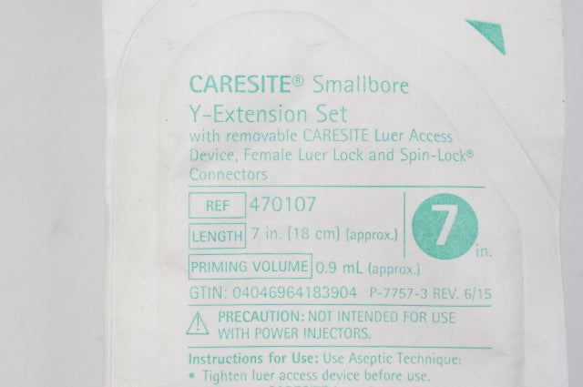- B.Braun 470107 Caresite Smallbore Y-Extension Set, 7in., 0.9mL