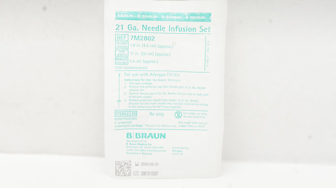 - B.Braun 7M2802 21Ga Ndle Infusion Set 1.8inch x 11inch x 0.6mL Approx.